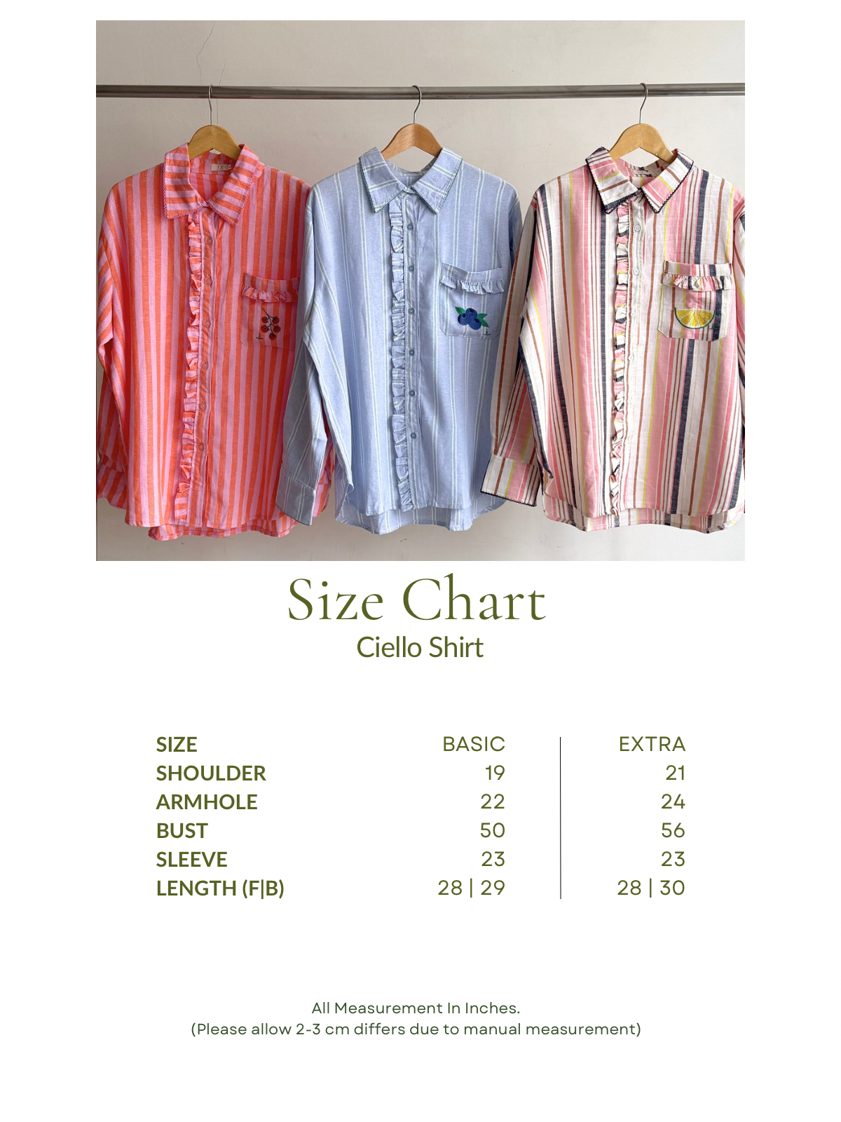 The Ciello combines fresh-colored stripes with soft linen weaves, finished with a pocketful of cheerful fruits and delicate crochet touches.