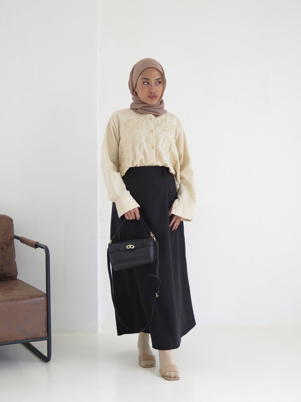 "The Mary midi skirt is a timeless "A-line" skirt that complements your everyday attire. It features belt loops, allowing for versatile styling options."
